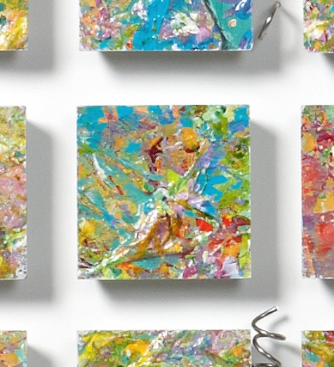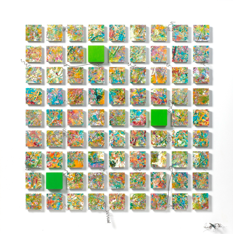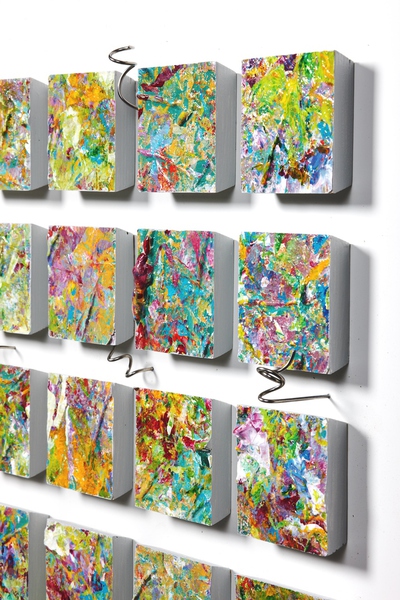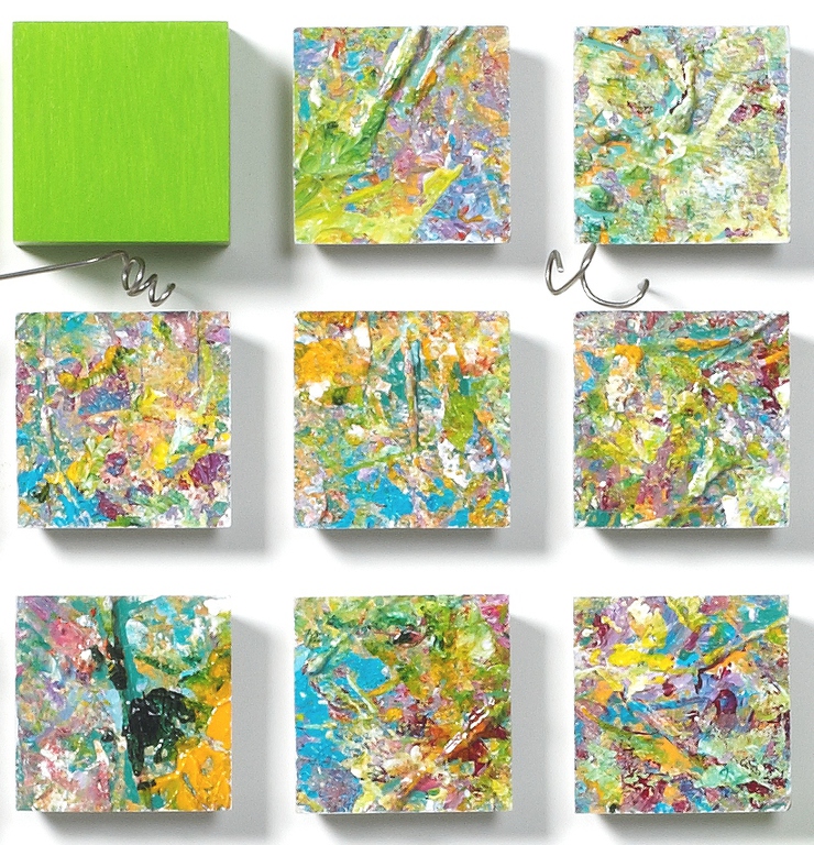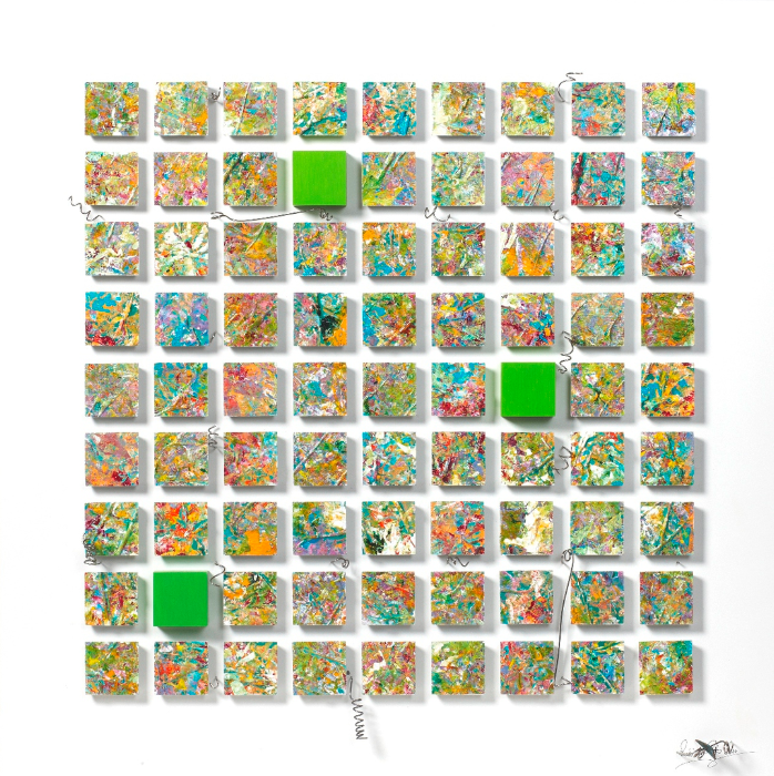 81 unterschiedliche Art-Pixel, 7 cm x 7 cm, mit Edelstahl Draht Spiralen
