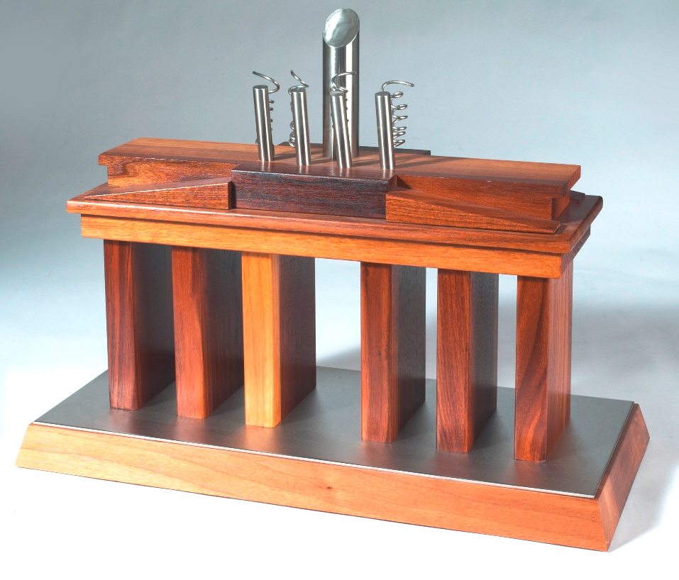 Nussbaumholz, geölt, mit Edelstahlstiften und Edelstahlplatte;